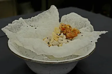 Ubrzo nakon dolaska i odlične preporuke vina Matrixovog osoblja koje se savršeno sljubilo uz prvi slijed, za stol su stigle košarice s bijelim grahom. Kremasti bijeli grah u košaricama od rižinog papira s tostiranim bademima i domaćim kimchijem postavio je visoke kriterije za daljnji tijek večere, ali već je sljedeće jelo naznačilo da večera ide samo nabolje. Panirana ljutkasta kuglica od batata, špinata, mrkve i cvjetače u umaku od sojinog jogurta s koprom bila je zalogaj čistog užitka, savršeno balansiranih okusa i omjera blago pikantnog, slatkog i kiselog. Treći slijed odveo nas je na daleki istok, miso juha od povrća i tofua s domaćim ramen rezancima, nori algom, tahinijem i mayu uljem, bila je odličan uvod u glavno jelo koje je spojilo okuse istoka s poznatim domaćim okusima. Tako je za glavno jelo poslužen grilani tempeh s pečenom hokaido tikvom, hummusom i salatom s ječmom i pinjolima, vrhunac večere koji je zaokružio sve dotadašnje sljedove. Iako se iz naziva deserta dalo zaključiti kako će za stol stići topla šalica kave s lješnjakom, Cappuccino Lješnjak je, na ugodno iznenađenje gostiju, bila cappuccino mousse krema i maslac od lješnjaka na biskvitu s lješnjacima, koji je bio peti i zadnji slijed večere, koja je dostojanstveno obilježila ovogodišnji