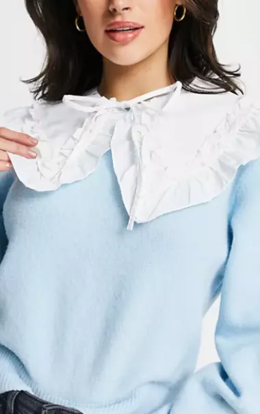 Nježna plava kragna s kariranim uzorkom i velikim izvezenim rubom podsjeća na one koje smo nosile kada smo bile djevojčice.