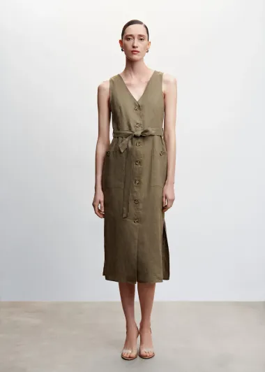 Haljina na kopčanje u bež nijansi, izrađena od mješavine lana.
