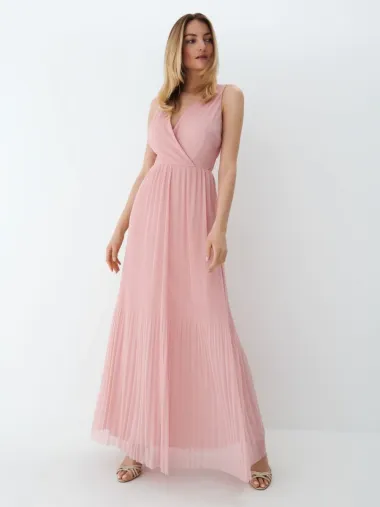 Kratka haljina u romantičnom stilu u nježnoj puderastoj boji.