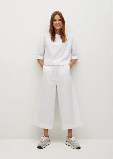 Lepršave i široke bijele hlače od liocelnog vlakna savršen su izbor za formalnije prigode. Odlično pristaju uz cipele na petu.