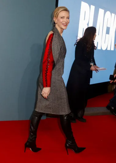 Blanchett je nosila zanimljivu haljinu od vune s uzorkom riblje kosti, poznat pod engleskim nazivom
