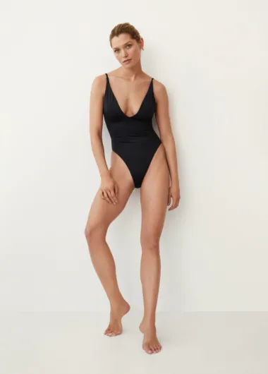 Jednodijelni dekoltirani kupaći kostim u crnoj boji elegantan je izbor savršen za ljeto.