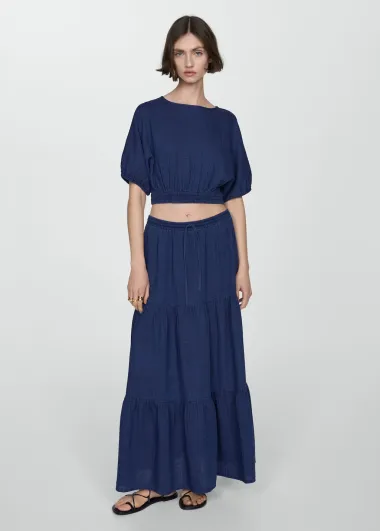 Suknja od popelina stegnutog struka i širokog kroja koju je danska kraljica odabrala za svoj outfit među najpopularnijim je modelima ove sezone, a jako slični modeli u svim bojama mogu se pronaći i u aktualnim kolekcijama mnogih high street brendova.