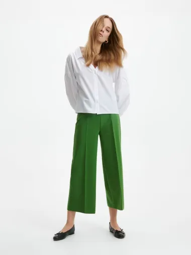 Elegantne hlače izglačane na crtu u zelenoj boji začinit će svaki look.
