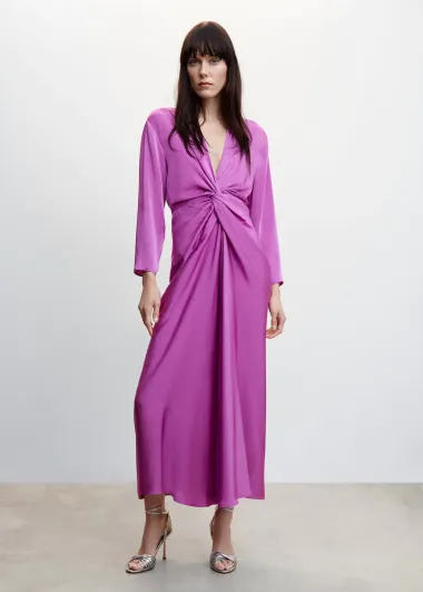 Ženstvena midi haljina s čvorom, izrađena od satena.
