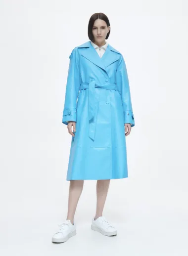 Baloner od imitacije kože u akvamarin boji, s trakom za vezanje oko struka.