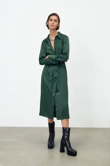 Klasična haljina s pojasom u stilu košulje. U trendi zelenoj boji.