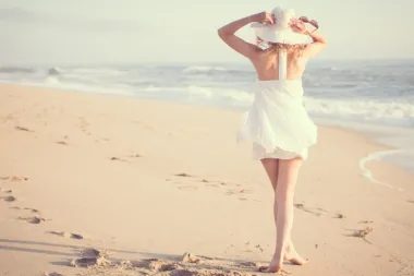 Lagani bijeli kombinezon idealan je za vruće dane na plaži.
