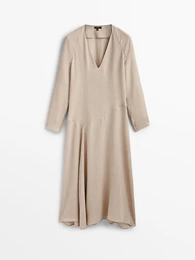 Jednostavna haljina od od vune i liocela, s V izrezom.