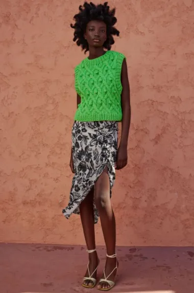 Viskoza je jedan od omiljenih materijala za toplije dane, što ovu zelenu suknju sa sitnim cvjetićima čini savršenom.