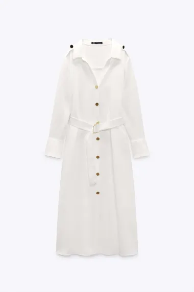 Zara, satenska košulja haljina s remenom, 39,95 eur