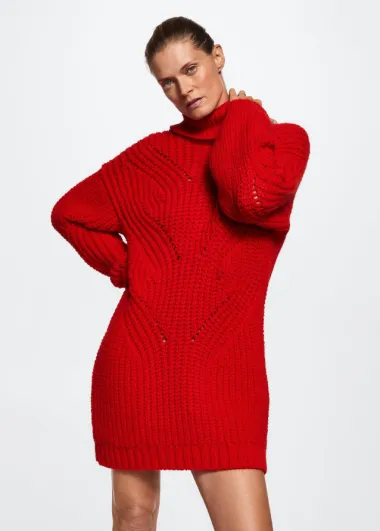 Pletena haljina s dolčevita ovratnikom grijat će te i u najhladnije dane, a crvena boja unijet će malo života u tvoje zimske outfite.
