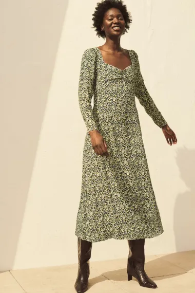 Lepršava midi haljina cvjetnog printa savršeno će poslužiti u formalnijim prigodama. Možeš je nositi uz visoke čizme i sako ili baloner.