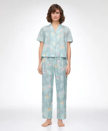 Lepršava pidžama ležerna dizajna izrađena od tkanine od viskoze.