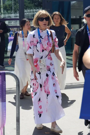 Glavna urednica Voguea na Olimpijskim igrama gledala je ženski teniski meč, što nije neobično za nju jer i sama redovito igra tenis. I ovaj put je ostala dosljedna svom stilu, odjenula je maxi bijelu haljinu s cvjetnim uzorkom i nosila je svoj zaštitni znak - crne sunčane naočale.