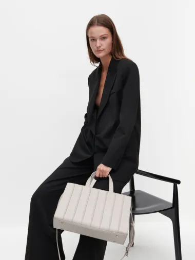 Elegantna i profinjena torba od kože u nježnoj nude boji idealna je za proljeće.