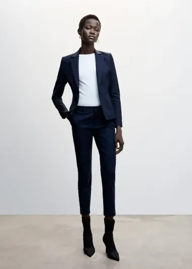 Uske poslovne hlače u tamnoplavoj nijansi.