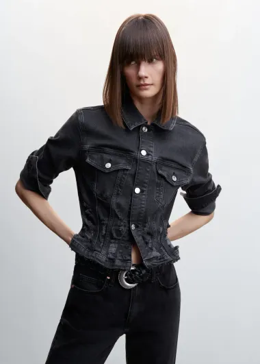 Jakna od trapera s porubom pohabanog izgleda. Idealno za ležernije kombinacije.