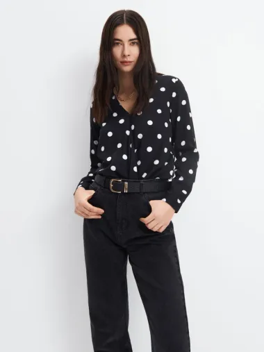 Lepršava bluza od ugodne viskoze s razigranim točkastim uzorkom.
