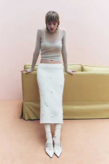 Pletena suknja od mješavine alpake s našivenim šljokicama, 49,95 eur