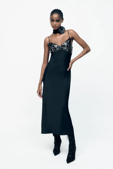Haljina sa šljokicama na vezanje oko vrata u kojoj ćeš izgledati glamurozno.
