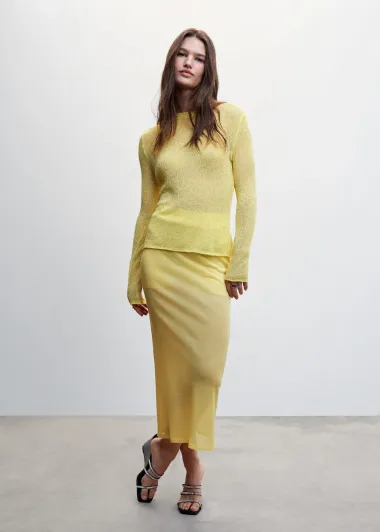 Poluprozirna pletena suknja u upečatljivoj žutoj boji.