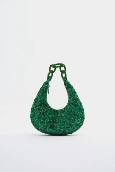 Zelena torbica za nošenje preko ramena s perlicama bit će glavni adut svakog tvog ljetnog outfita, a idealna je za posebne prilike poput vjenčanja ili večernjeg izlaska.