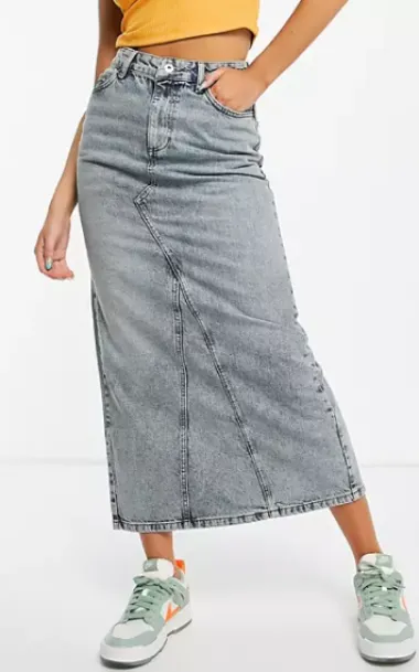 Isprana siva traper suknja u midi dužini i visokog struka.