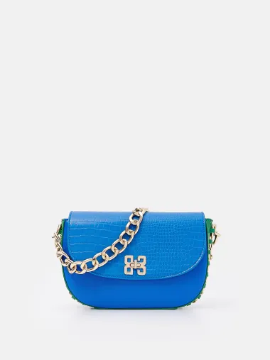Ručna torbica s lancem u plavo-zelenoj kombinaciji sjajno ide na traperice.