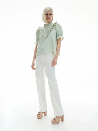 Bluza od lepršave tkanine s volanima i puf rukavima.