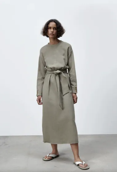 Lanena haljina s pojasom odličan je odabir za trendi poslovne outfite.