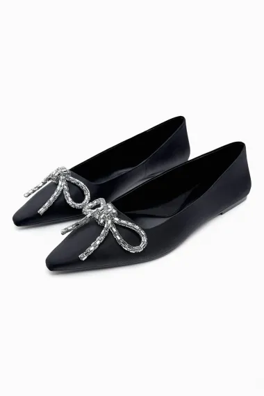 Kožne balerinke s mašnom sprijeda i zaobljenim vrhom.