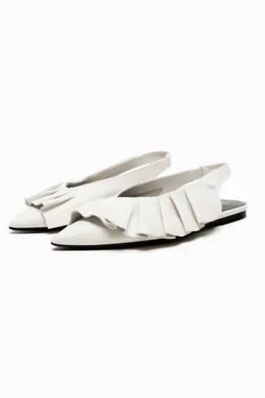Ravne kožne balerinke s otvorenom petom i ukrasnim volanima.