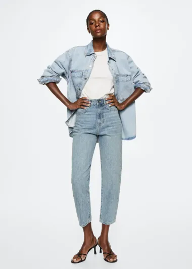 Široka košulja od prozračnog pamučnog materijala dugih rukava sa šiljastim ovratnikom i naborom na leđima.